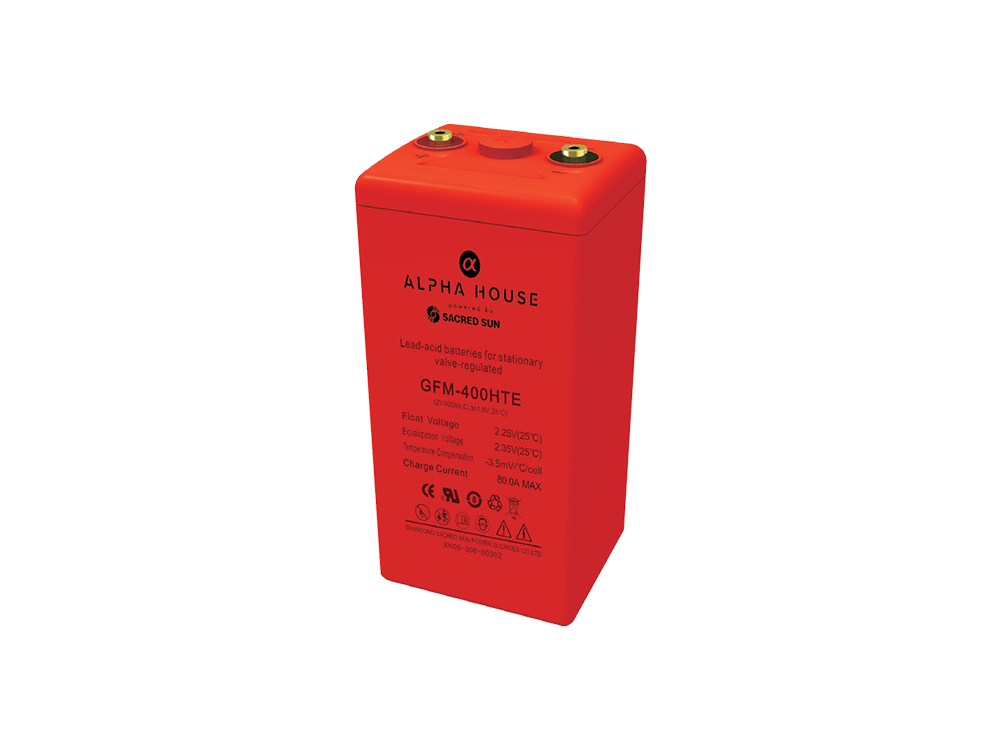 Alpha House, powered by Sacred Sun, offers two distinct ranges of VRLA batteries tailored to various high-performance applications and high temperature environments. These series —GFM-HTE and FTA-HT— utilise advanced AGM technology and robust design principles to deliver superior cycle life, fast charging capabilities, and reliable performance in extreme temperatures. The ABS container for these high temperate blocks is UL94-V0 rated, as standard. These ranges are suitable for both floating and cyclic applications in harsh environments.